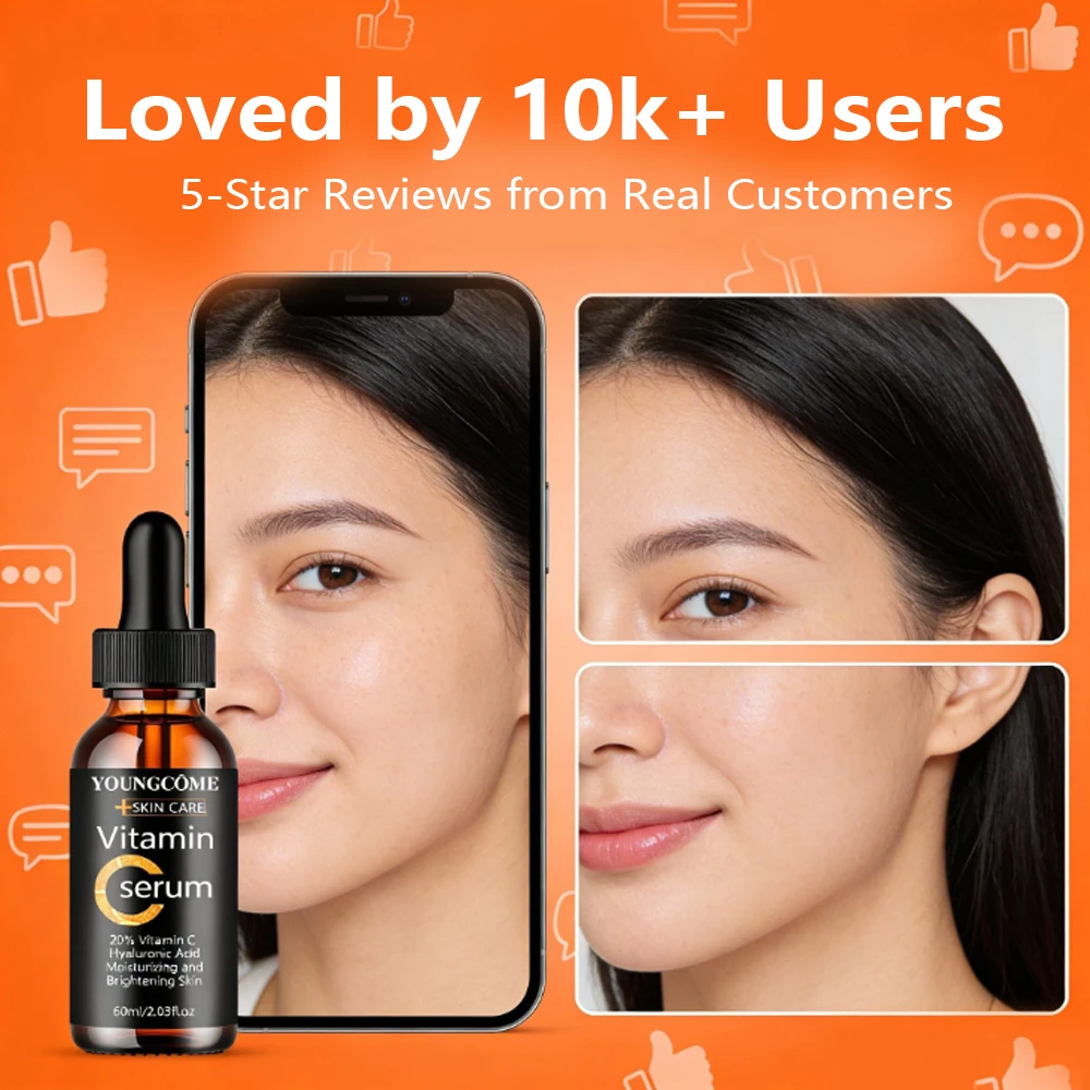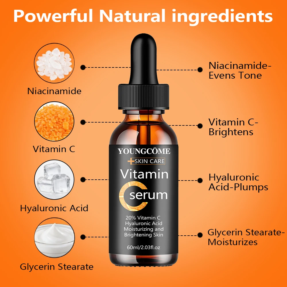 Soro de ácido hialurônico YOUNGCOME com vitamina C - Essência facial hidratante e estimulante o brilho diário para todos os tipos de pele 40/60ML